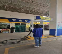 现场设置2座SF双层油罐,分别为30m3汽油罐(92#)1座,50m3柴油罐(0#)1座,油罐总容积为55m3(柴油罐容积可折半计入油罐总容积),依据《汽车加油加气站设计与施工规范(2014年版)》(GB50156-2012)第3.0.9条的规定:该加油站为三级站。该加油站有4台加油机,1台双枪汽油加油机,2台双枪柴油加油机,1台单枪柴油加油机;设置一次、二次和三次油气回收装置。