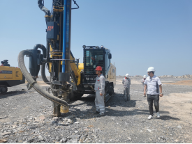 该矿山于2019年12月正式开工建设,2021年4月完成了基建工程内容,具体包括矿山993.3m卸矿平台至1110m采准平台修筑运矿道路、岩石路基,泥结碎石路面;设备上山路工程:1110m以上至削顶区域;削顶工程:矿山+1125m及以上水平进行削顶;采准工程:+1110m、+1095m、+1080m进行采准。
