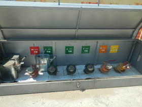 该加油站设置 5 具储罐,其中单罐容积为 30m3 的汽油储罐 1 具,单罐容积为 50m3的汽油储罐 1 具;单罐容积为 30m3的柴油储罐 1 具,单罐容积为 50m3 的柴油储罐 2 具,油品总储量为 145m3(柴油罐容积可折半计入油罐总容积)。根据《汽车加油加气加氢站技术标准》(GB50156-2021)第3.0.9 条规定,该加油站属于二级加油站。设置有加油、卸油以及三次油气回收系统,加油站共设置 4 台加油机。