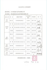 安全评价项目参与人员