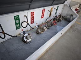 该加油站主要设备设施:罐区设置4具储罐,分别为2具30m3双层汽油储罐、2具30m3双层柴油储罐,储罐总罐容为90m3(柴油罐容积折半计入),依据《汽车加油加气加氢站技术标准》(GB 50156-2021)表3.0.9的规定,该加油站属于三级加油站。该加油站设置4台加油机,采用潜油泵式加油工艺,并设置三次油气回收系统。